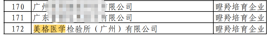 2023 年 8 月(yuè) 23 日,廣州市黃(huáng)埔區科學技術(shù)局發布了《關于黃(huáng)埔區 廣州開(kāi)發區 2022 年度瞪羚企業(yè)認定申報審核結果的(de)公示》名單。美(měi)格醫學檢驗所(廣州)有(yǒu)限公司(簡稱美(měi)格醫學)位列其中。