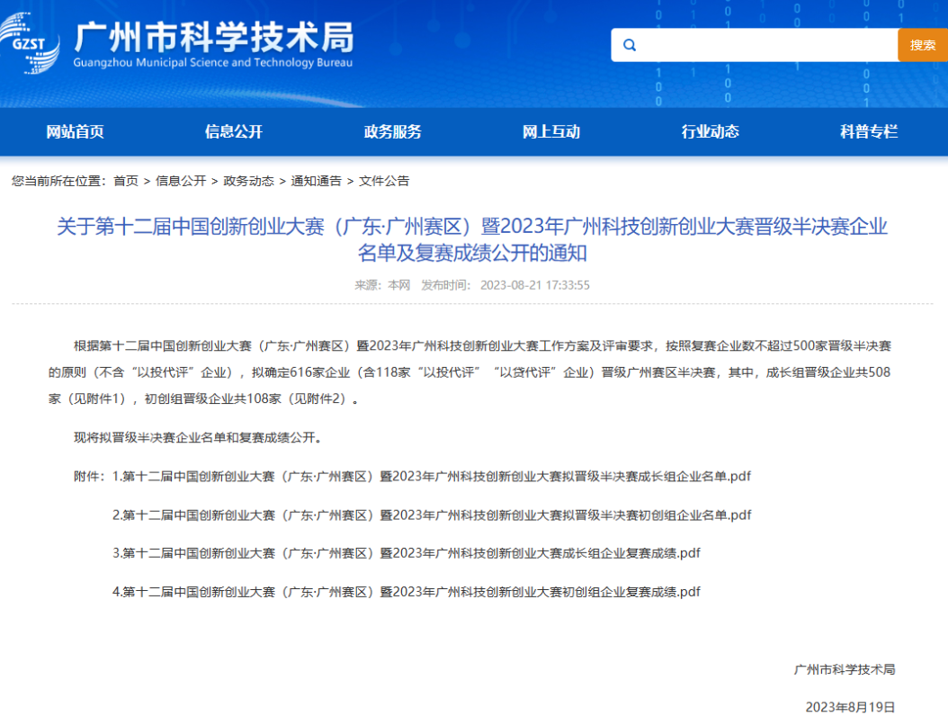 2023 年 8 月(yuè) 21 日,廣州市科學技術(shù)局公布了第十二屆中國創新創業(yè)大(dà)賽(廣東·廣州賽區)暨 2023 年廣州科技創新創業(yè)大(dà)賽複賽成績和(hé)晉級半決賽的(de)企業(yè)名單。美(měi)格醫學成功晉級成長組企業(yè)半決賽。