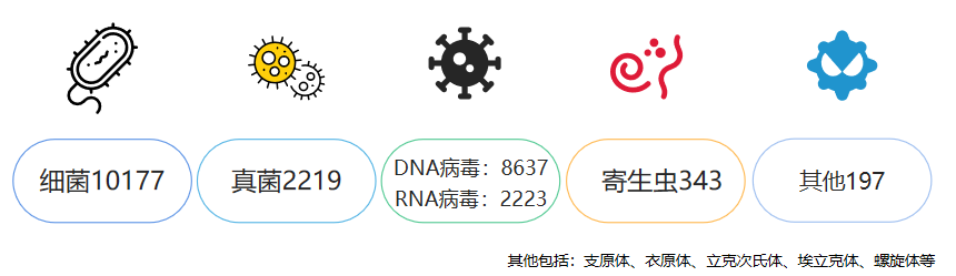 MagiSeq mNGS 項目檢測範圍基于能(néng)提供廣域搜索、并持續更新的(de)參考基因組數據庫,包含約有(yǒu) 60萬 株微生物(wù)參考基因組,檢測展示的(de)結果主要來源于經過細緻整理(lǐ)、可(kě)精确鑒定的(de)微生物(wù)種類數據庫,總共 23796 種。