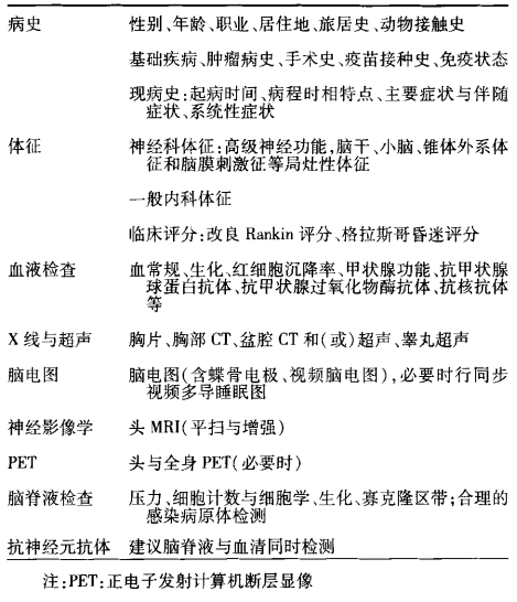 自身免疫性腦(nǎo)炎診斷評估程序表[2]