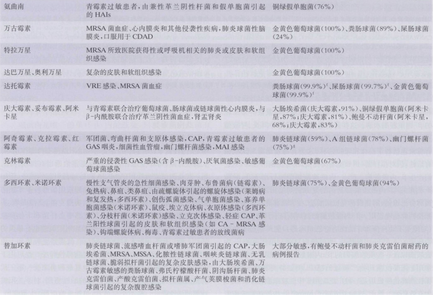 雖然現在每年都(dōu)有(yǒu)全國細菌耐藥監測網的(de)數據作爲參考,但(dàn)臨床醫生最有(yǒu)用(yòng)的(de)參考數據應是最近當地(dì)實驗室的(de)細菌耐藥數據,下圖列出了不同感染的(de)藥物(wù)選擇、常見病原體和(hé)敏感性數據: